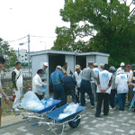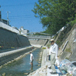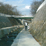 早朝から各自自前の作業着姿で集合する「妙法寺川を美しくする会」のメンバー。皆さん、くれぐれも事故のないように細心の注意を払い、来年の花見桜を楽しみに心に描き、張り切って清掃活動に励みましょう!と掛け声宜しく各自の持ち場に向って行きました。想えば妙法寺川の両側には約400本のソメイヨシノが植えられており、毎年春には見事なサクラのトンネルをつくってくれます。のんびり川沿いを歩きな がらサクラを楽しむ光景は考えるだけでも嬉しくなるものです。この妙法寺川は昭和30年代までは魚が棲み、夜になると、上流ではホタルが乱舞していたそうです。川の安全のための工事も終わり、生きものがたちが生活しやすい環境に戻りました。生きものが生活しやすいよう創意工夫もしています。